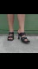 Black Double Strap Square Toe Heel Mule Sandals