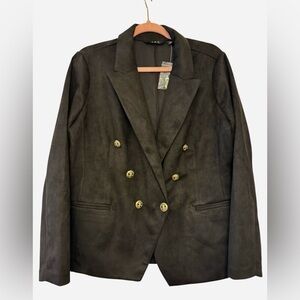 IMAN Global Chic Luxe Faux Suede Double-Breasted Blazer