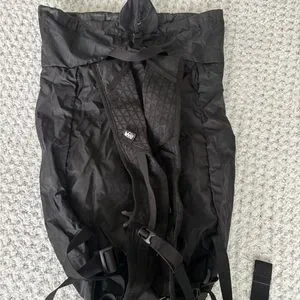 Stylish black drawstring backpack. Perfect for everyday use. Good for hiking and travel
