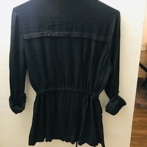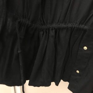 Lightweight jacket with drawstrings to make more fitted. Has gold buttons. This is more a blouse style shirt, not to be worn as a coat.