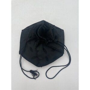 Black Drawstring Pouch Leaf Pattern Victorian Style Purse
