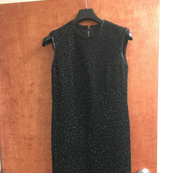 Fabulous vintage dress. In great condition. Barely worn. Stretch wool with silk lining and beads. Back zip. Length is above the knee. This is NOT a mini dress. Size 8 (but perfect for today's size 6). Fun and fabulous.