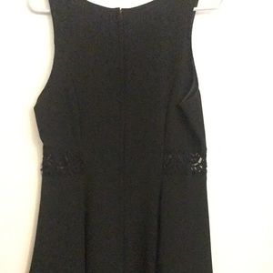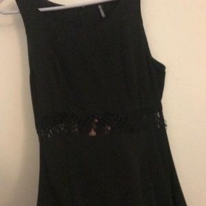 Black Dress. Falls above the knee. The lace across the midsection is lace and see through. Gently worn down once.