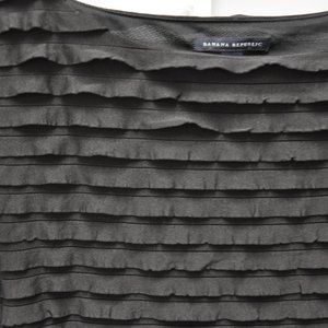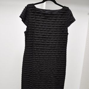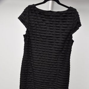Banana Republic tiered fabric with stretch and short sleeve - 'little black dress'. Very forgiving! Size large. Hits right at knees. From top of shoulder to bottom of fabric this dress measures 38.5 inches.