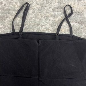 Chic black mini dress with spaghetti straps. Lucca couture from urban outfitters. Ajustable straps. Back zipper. Discoloration shown but haven’t tried to get it out. Size small.
