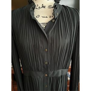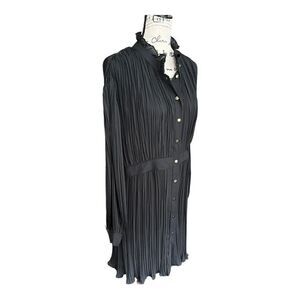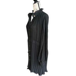 Black Dress Accordian Pleats Button Front Long Sleeves and Ruffle Neck size 4XL