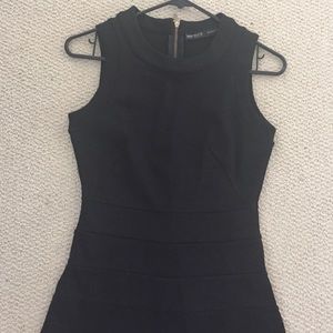 Simple mod black dress by Zara. Gold zipper in back.Fabric: viscose, polyamide, polyester and elastane. Jetson like style, very comfortable with a little stretch and give. Good condition. Good for day or night!