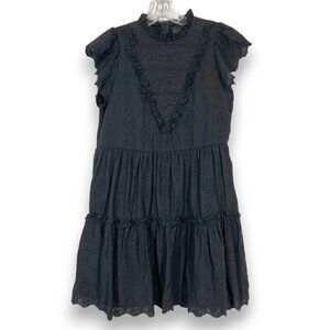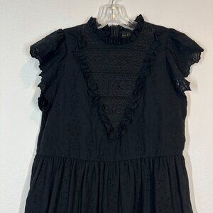 Black Dress Cottagecore Lace Ruffle Mini Eyelet Prairie Medium
