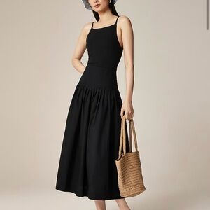Crafted from stretchy cotton on top and crisp poplin on the bottom, it comes with pintuck details along the waist that release into a full, flowy skirt.