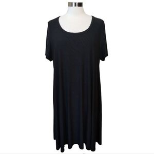 black dress plus size women's embroidered scoop neck short sleeve 1X