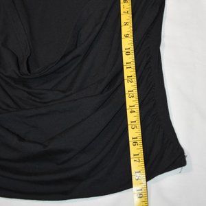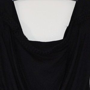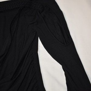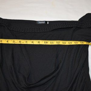 Form fitting black dress top. Cutouts in sleeves. Braided accent across chest. Never been worn. Smoke free, pet free home.