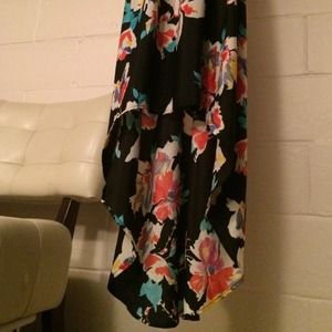 Black Dress w/ Flower Design; Shorter in Front; Razor Back. 100% Polyester.