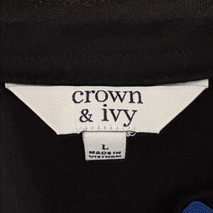Crown & Ivy black dress with striking blue and green Ric Rac. Ideal for any occasion.