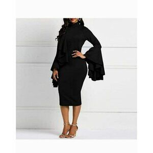 Black Dress with Flare Sleeves, fitted, Wedding Guests/Dinner/Date Size XL