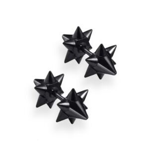 An edgy black spiked dual-sided studded stainless steel earrings! Hypoallergenic gender-fluid fashion earrings! Stud seven prongs faux gauged style, normal pierced earrings!