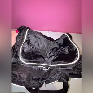 Black Duffel Bag with White Accents and Modern Design