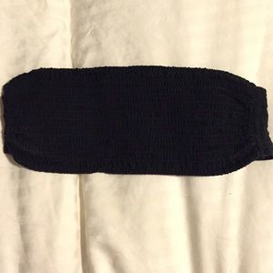 Black bandeau, looks good under anything! Not much support, which is why it doesn't fit me. Would fit better for an A or B cup. Super good for the summer time or just underneath anything with an open back. Third photo shows how the back gets skinnier than the front which is thicker. Worn once.