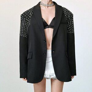 Black Elegant Formal Women's Oversized Rhinestone detailed Blazer