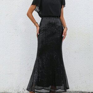 Black Elegant Women's Butterfly Sleeve Sequin High Waisted formal Evening Dress