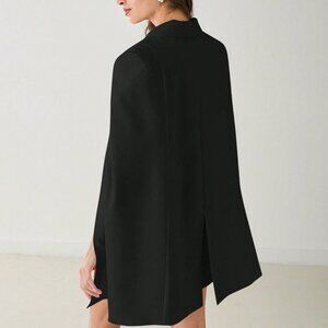 Black Elegant Women's Button-Front Long Sleeve Casual Blazer
