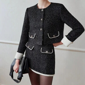 Black Elegant Women's Contrast Binding Flap Detail Skirt