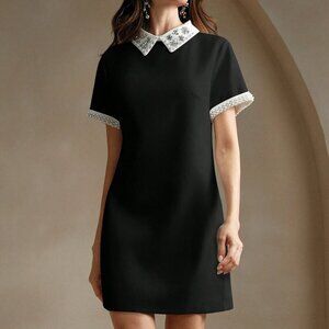 Black Elegant Women's Contrast Color Block Studded Decorated Dress