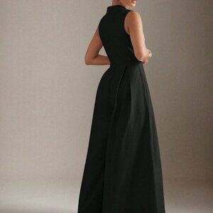 Black Elegant Women's Extreme Wide Leg Zip Front Sleeveless Jumpsuit