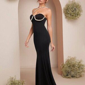 Black Elegant Women's Faux Pearl Embellished Bustier Mermaid Dress