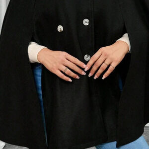 Black Elegant Women's Plus Size Button Poncho Sleeve cape coat