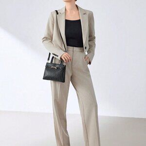 Black Elegant Women's Premium Textured Metallic Buckle Accented Handbag