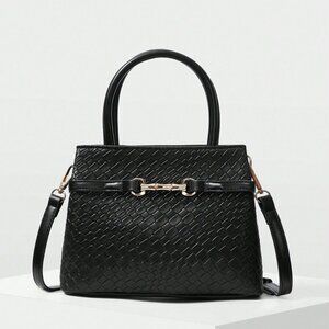 Black Elegant Women's Premium Textured Metallic Buckle Accented Handbag