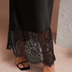 Black Elegant Women's Satin Lace Hem Detail Low Rise Skirt
