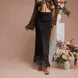 Black Elegant Women's Satin Lace Hem Detail Low Rise Skirt