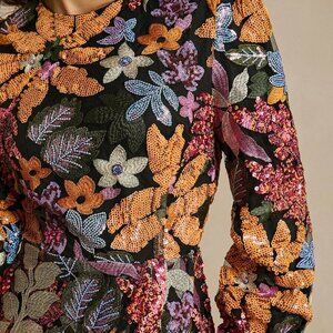 Black Elegant Women's Sequin Embroidered Print Long Sleeve Short Dress
