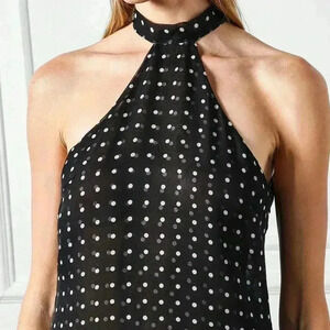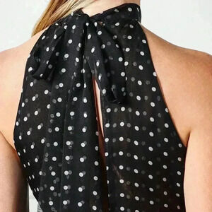 Black Elegant Women's Sheer Spot Halter Maxi Dress