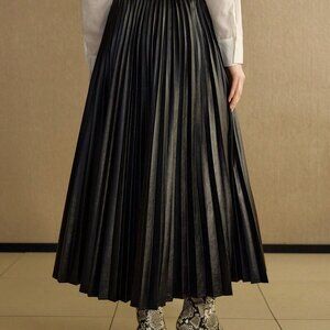 Black Elegant Women's Textured faux leather Pleated Skirt