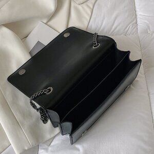 Black Elegant Women's V-Shaped Embroidery Thread Shoulder Bag With Chain Decor