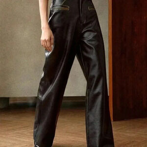 Black Elegant Women's Vintage Washed-Look Long Pants