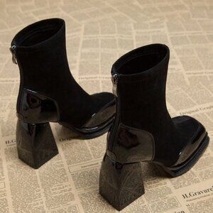 Black Elegant Women's Waterproof Platform Heel High Boots