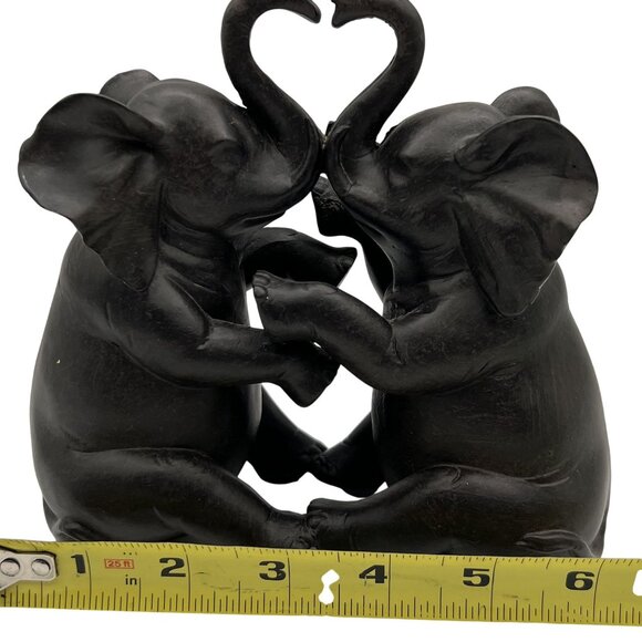 Black Elephant Love Couple Resin Art Deco 6.5" Tall 6.5" Wide Artsy Heart Trunks