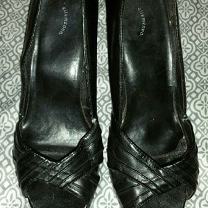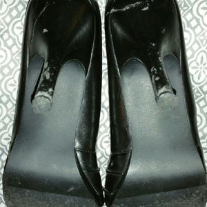 These heels have a darling peek-a-boo toe and have been worn well. There are a few indents in the heel, pictured above