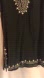This black tunic features intricate white embroidery in a V-shaped pattern on the neckline, extending down the chest for a striking contrast. The short sleeves are adorned with similar ornate designs, adding a touch of elegance to the relaxed fit. Crafted from a lightweight fabric, it's perfect for warm weather wear. Pre-Owned. * Smoke and Pet Free Household