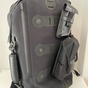 Ember Equipment is the name of a group of industrial designers with "deep experience and expertise in the design of technical soft-goods and equipment," as they write. "We most especially love bad-ass backpacks." That adjective perfectly suits their awesome Modular Urban Pack, which appears to be designed with indestructible, weatherproof hardware and provides the flexibility to add tailored modules that suit whatever you're hauling. Black Ember backpacks are not only practical, but also extremely durable. Reinforced, waterproof, with an aluminum frame, all-weather zippers, yet gentle on your devices and the things you carry with you (additional padding for laptops and tablets). Is good condition, some wear in lining but does not effect performance, see pic.