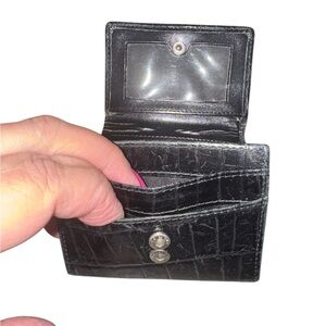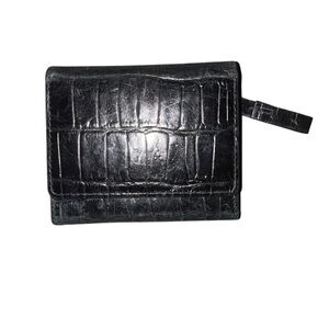 Elegant black leather trifold wallet with embossing. Compact and stylish design. Perfect for everyday use. Great condition.