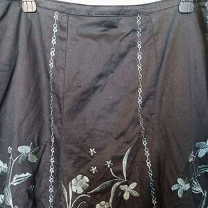 Black Embroidered A-Line Skirt With Floral Design - Coupe Collection - L
