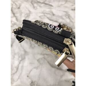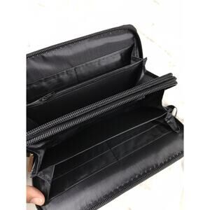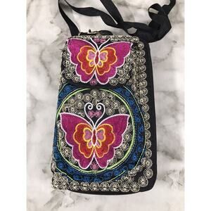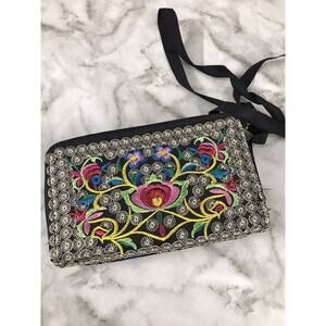 Black Embroidered Fabric Phone Wallet Crossbody Pink Flowers 8"X5" DETACH STRAPS