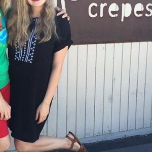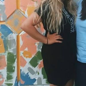 Black Embroidered Linen Sheath Dress - Boho Style
