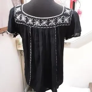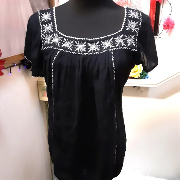 Black short sleeve top Embroidered top one small snag (shown on picture)