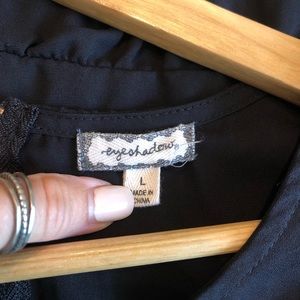 Black Embroidered Tunic Blouse Gold Exposed Zipper