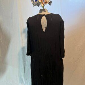 Black rayon gauze embroidered dress. This dress is in excellent shape and pairs well with Doc Martens for a 90s look. No rips, tears, holes, piling, etc. Skirt hits just above the knee on a 5'5" person.